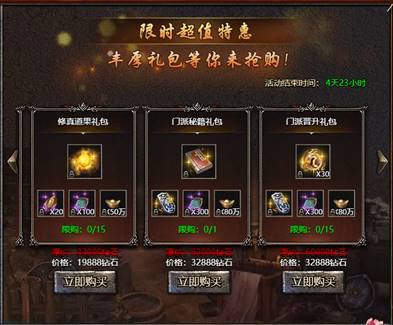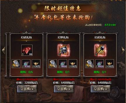 活动说明:活动期间将上架各种骨折特惠礼包供玩家购买。