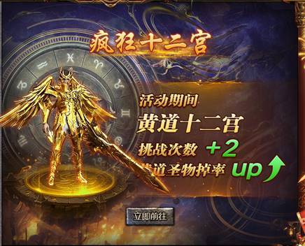 活动说明:活动期间黄道十二宫挑战次数增加,黄道圣物掉率提升。