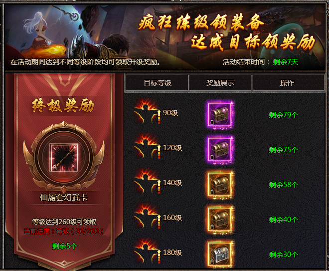 活动内容:开服期间将同时开启等级竞技活动,在这期间玩家达到不同的等级将可以领取对应的丰厚奖励,名额有限,速到速得!