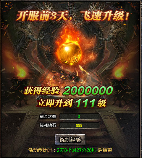 活动内容:花费一定钻石可以获得大量经验,每日可以炼制3次